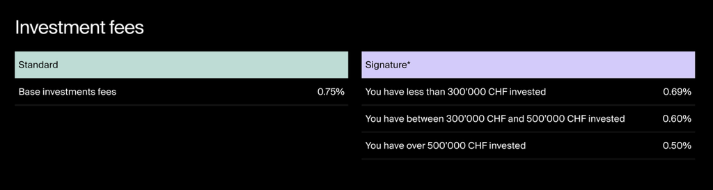 - Wenn du mehr als 500’000 CHF investiert hast: 0,50 %