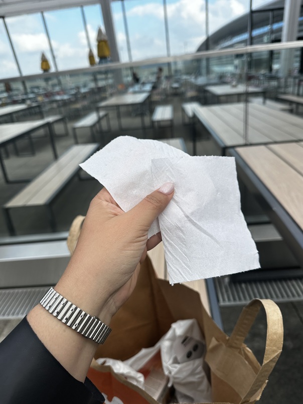 Natürlich hatte ich doch noch etwas zu bemängeln, nämlich das hauchdünne Toilettenpapier in den Flughafentoiletten.