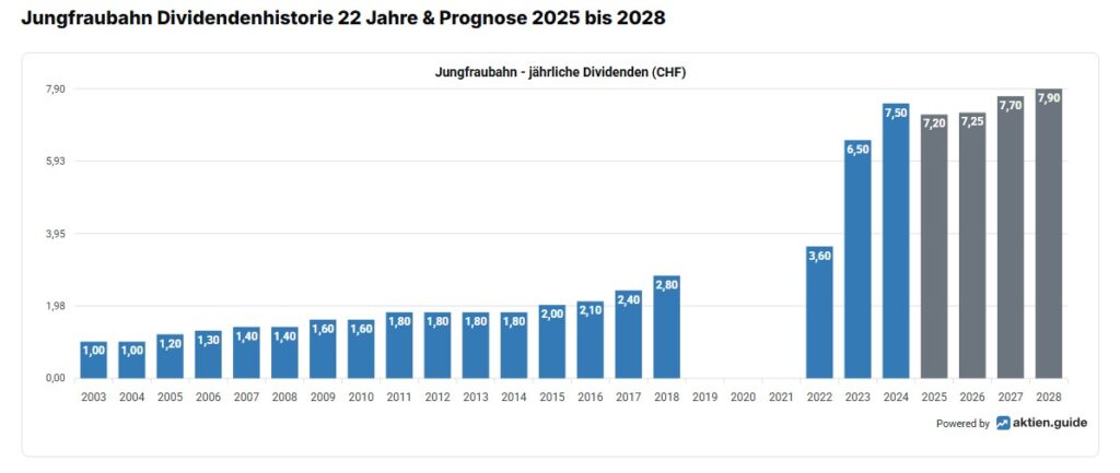 Bei der Jungfraubahn Holding AG gab es von 2019 bis 2022 keine Dividende. Der Grund war die Corona-Zeit mit viel weniger Touris.