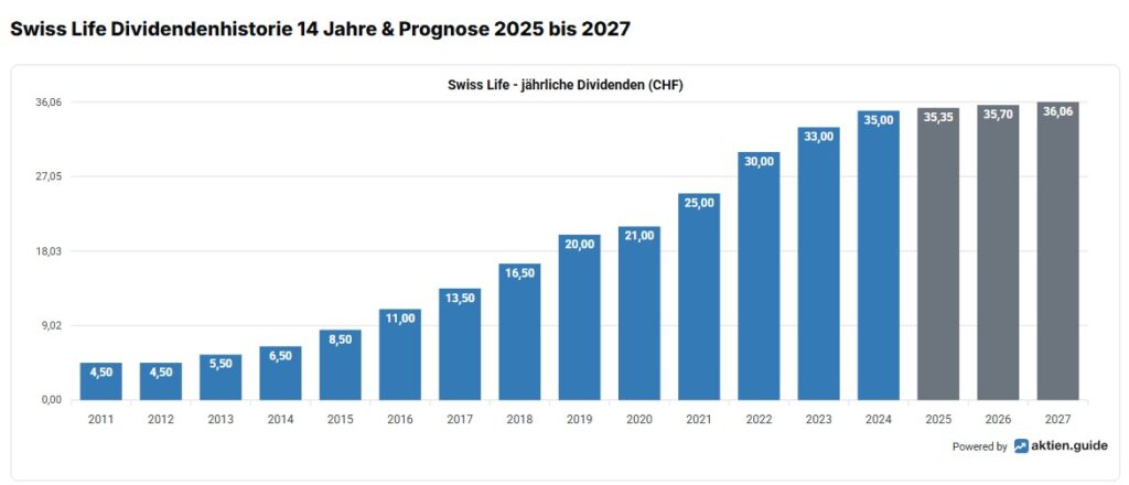 Von 2015 bis 2024 hat Swiss Life die Dividende von CHF 8 auf CHF 35 erhöht.