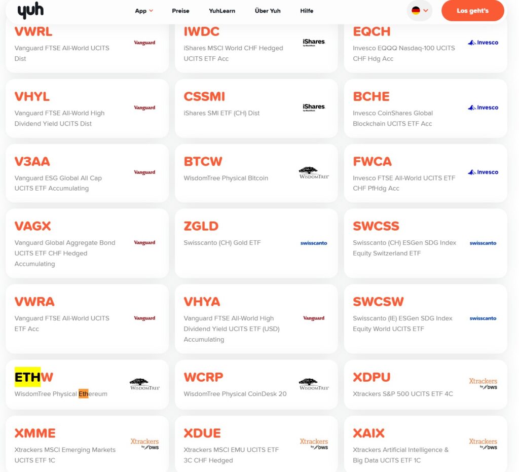 Alle 21 ETFs: vollständige ETF-Liste (Yuh)