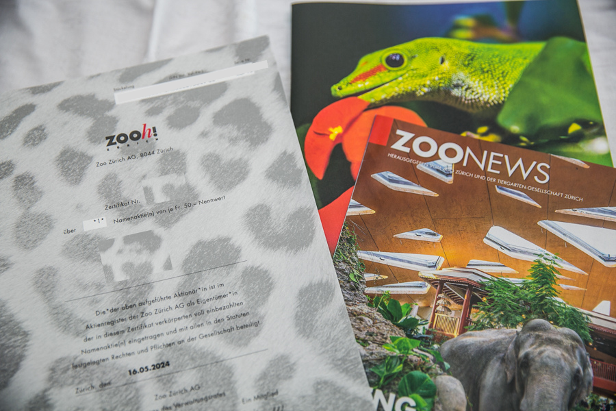 Ich habe mir diesen Frühling eine Aktie vom Zoo Zürich gesichert, um ab 2025 jährlich ein kostenloses Eintrittsticket zu erhalten und gleichzeitig einen Beitrag zum Erhalt und Ausbau dieser tollen Einrichtung zu leisten.